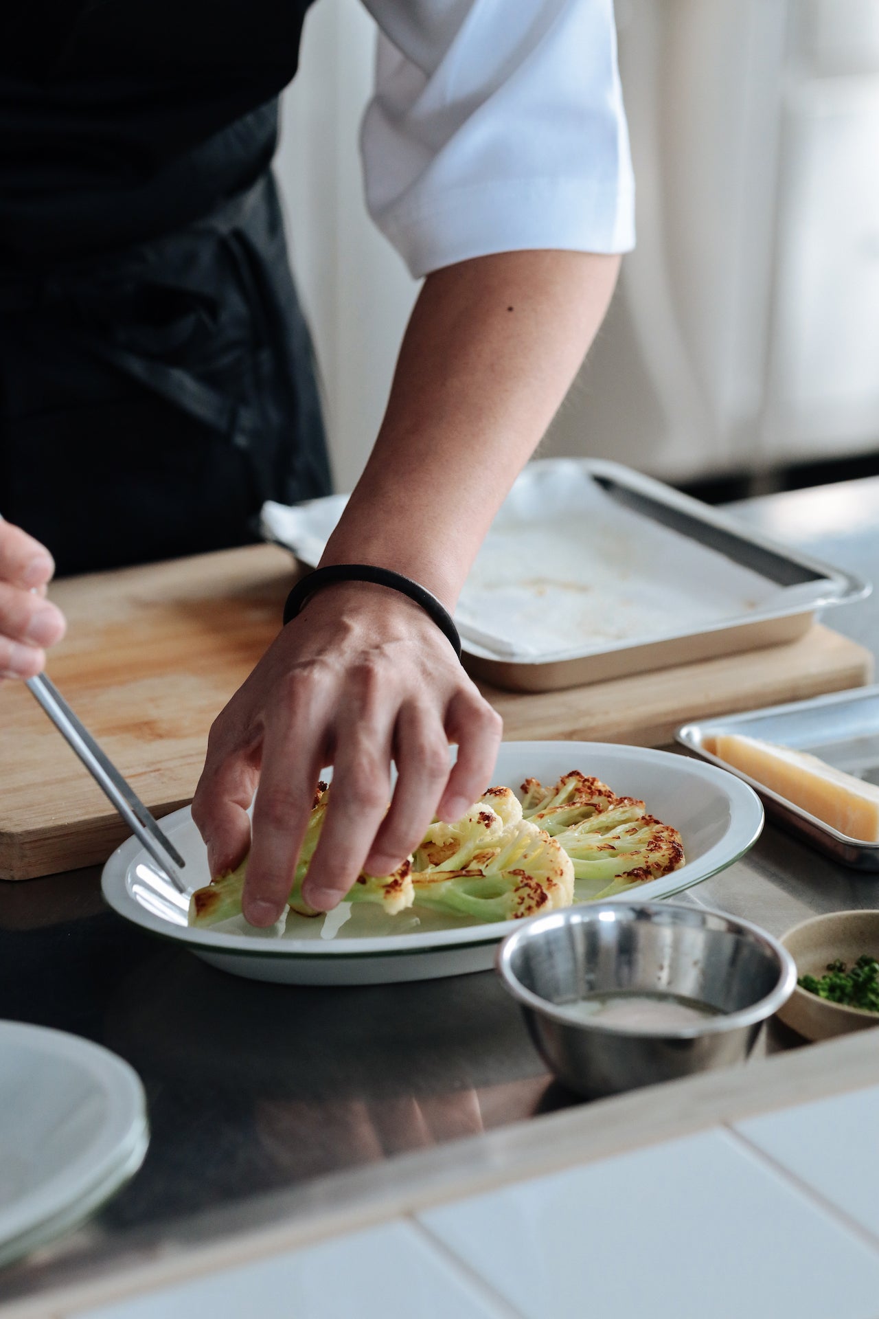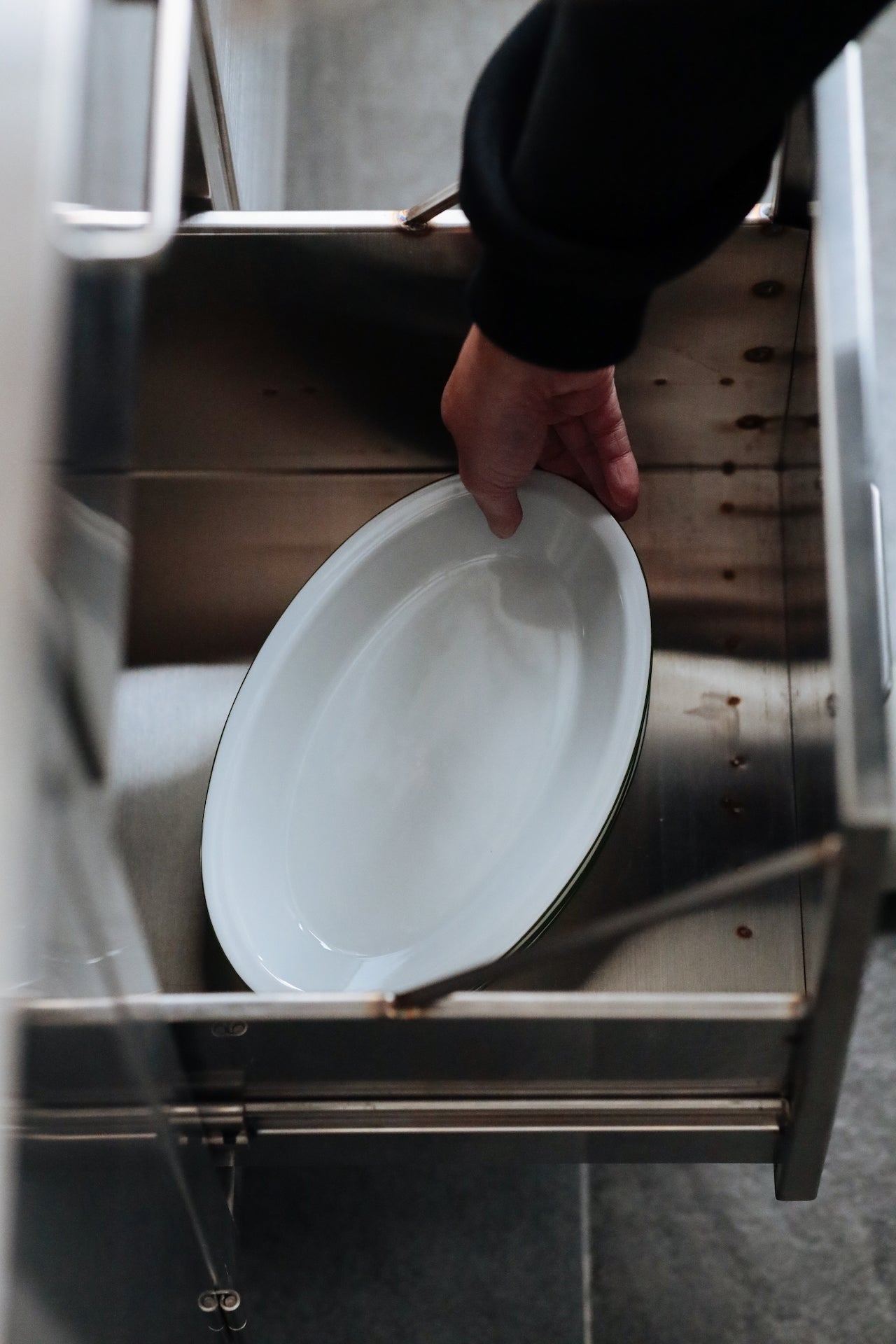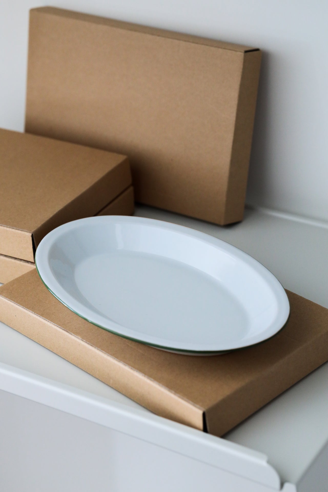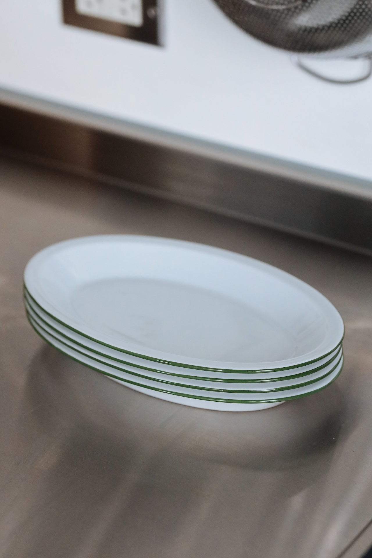 堆疊盤子時,邊緣的線條呈現出捲曲的效果,增添獨特的視覺趣味。該系列透過橢圓形與邊緣細節,實現了吹製玻璃難以達到的設計效果,同時兼顧實用性,包括強調食物呈現的邊緣設計、優化有限空間的堆疊性能,以及外觀與容量的完美平衡。