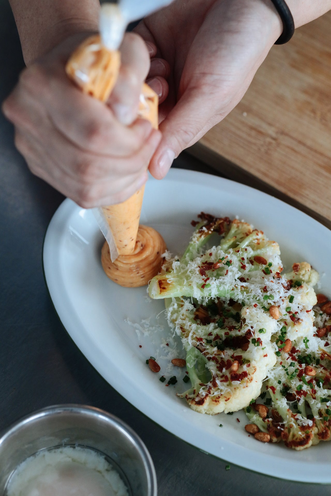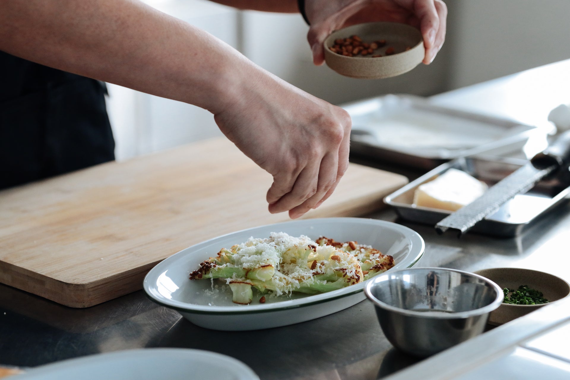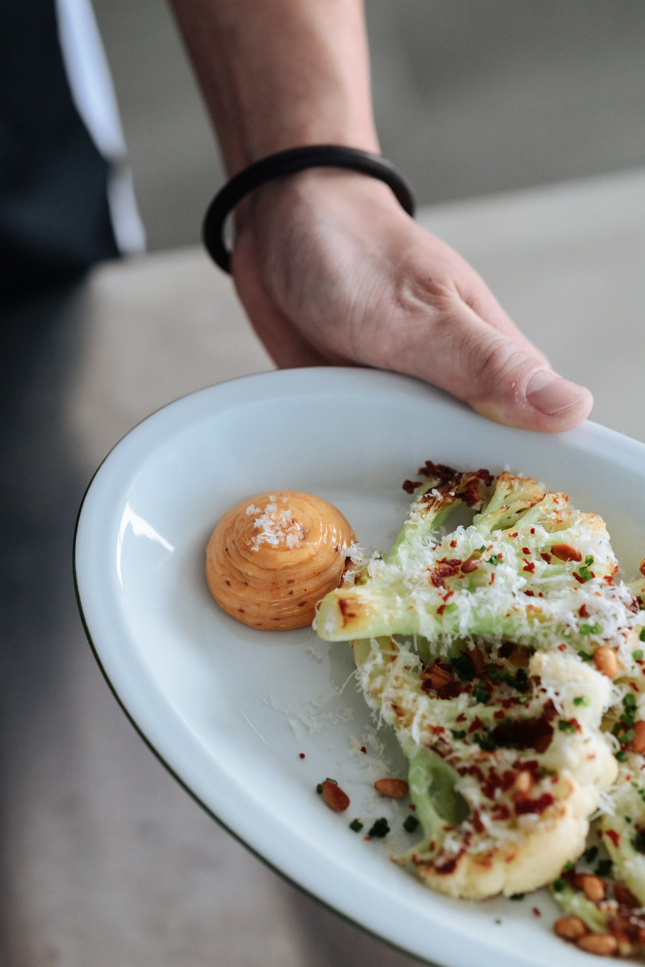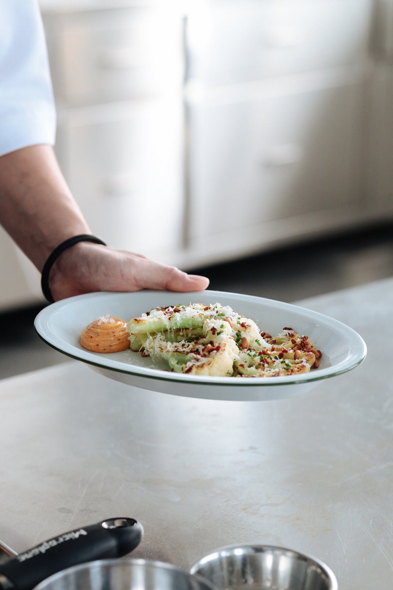 堆疊盤子時,邊緣的線條呈現出捲曲的效果,增添獨特的視覺趣味。該系列透過橢圓形與邊緣細節,實現了吹製玻璃難以達到的設計效果,同時兼顧實用性,包括強調食物呈現的邊緣設計、優化有限空間的堆疊性能,以及外觀與容量的完美平衡。