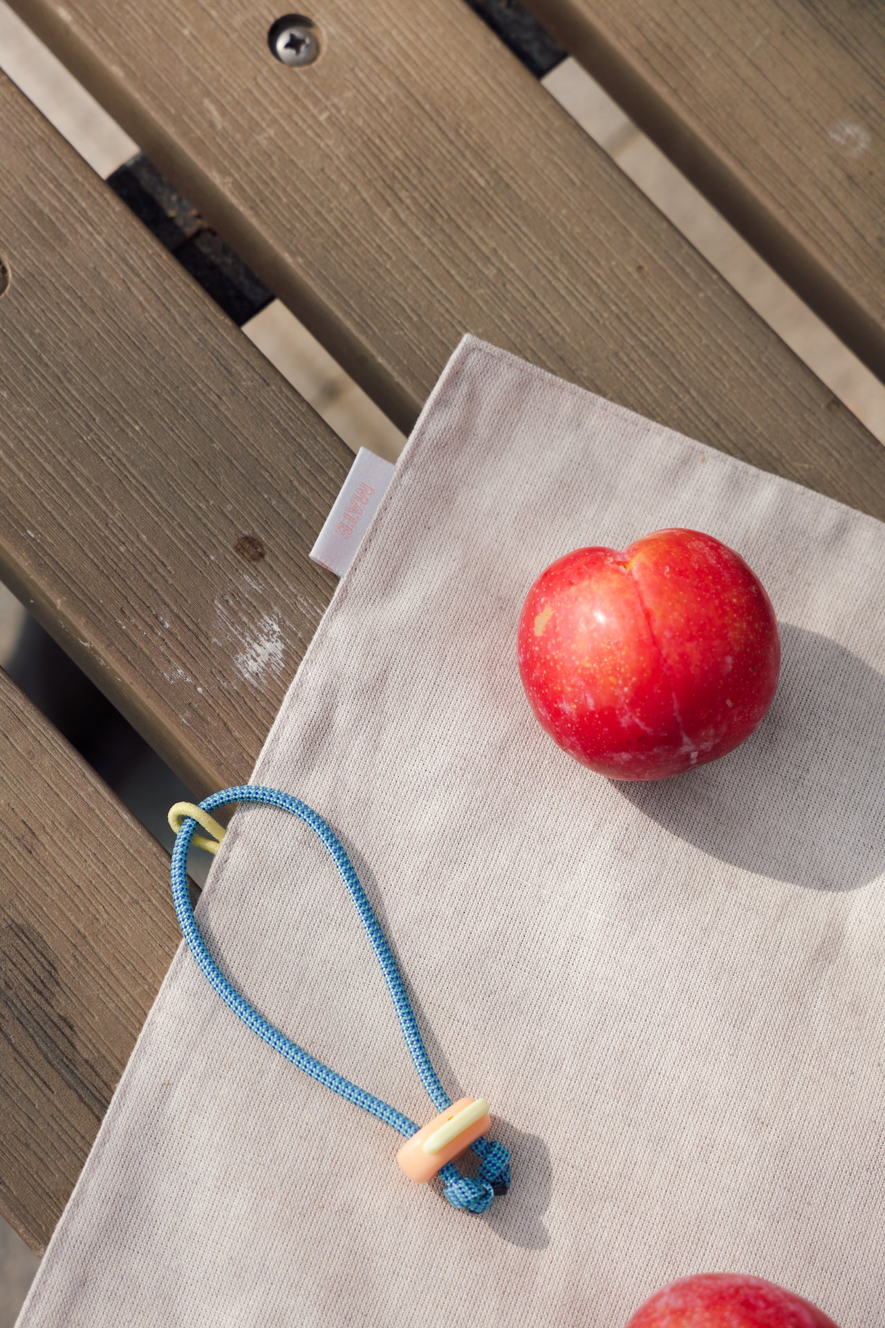 選用棉麻材質,兼具實用性與自然質地,適合日常反覆使用。使用完畢後可輕鬆捲收,搭配 Ohnoki 代表性的豬鼻扣設計,透過伸縮固定結構穩固收納,方便隨行攜帶。