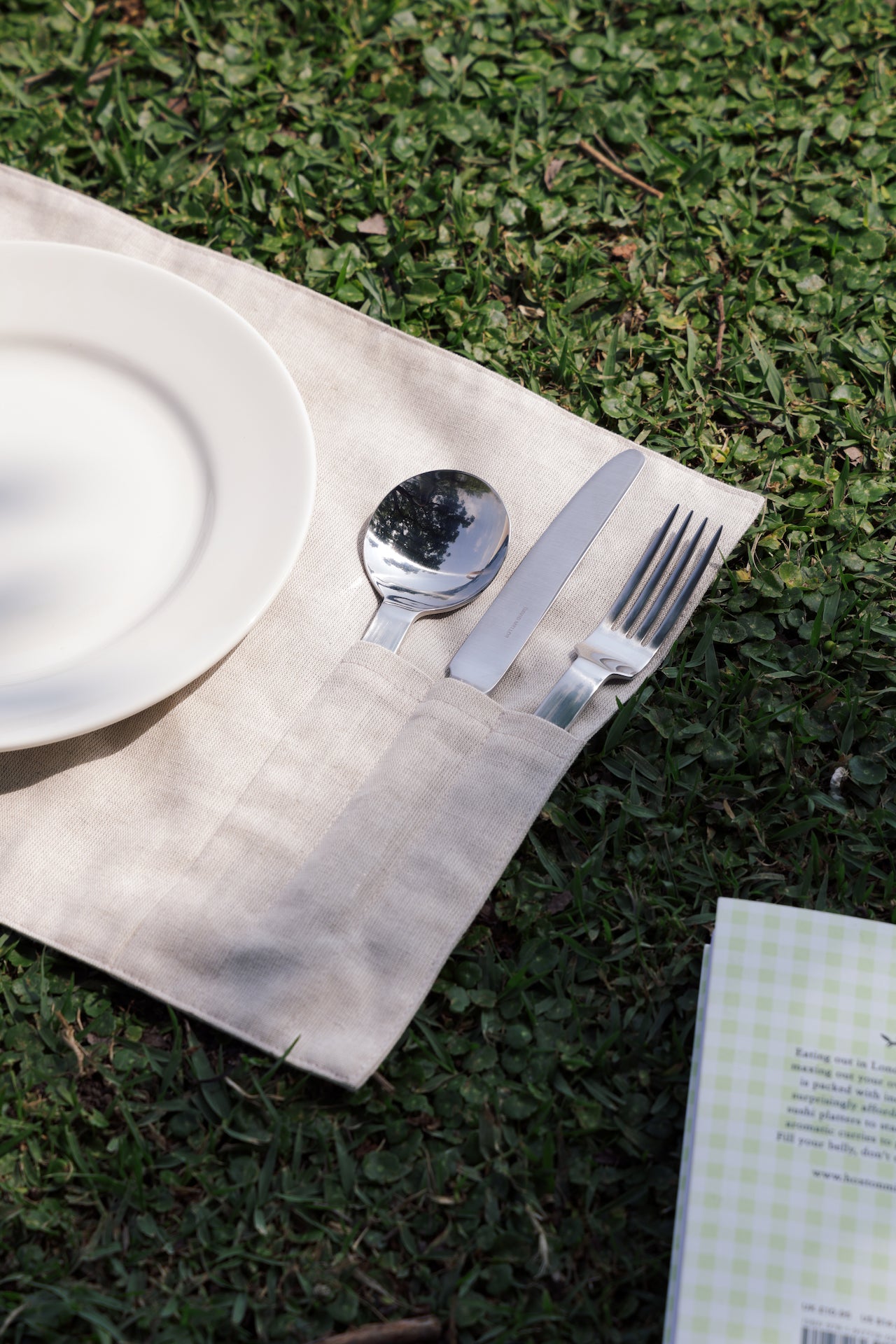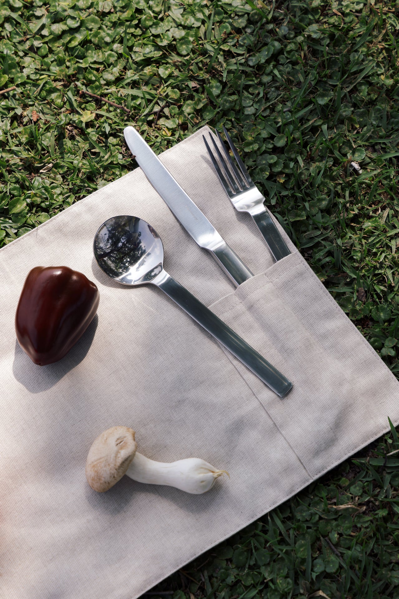 內部設有三個獨立餐具槽,讓刀、叉、匙各自安放,維持整潔有序;展開後即可作為餐墊使用,無論在戶外、辦公室或移動途中,都能快速展開,開始一頓簡單的用餐。